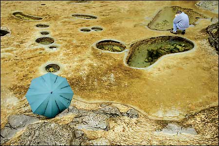 rocky headland, where dozens of pothole-like pools have been carved out over the